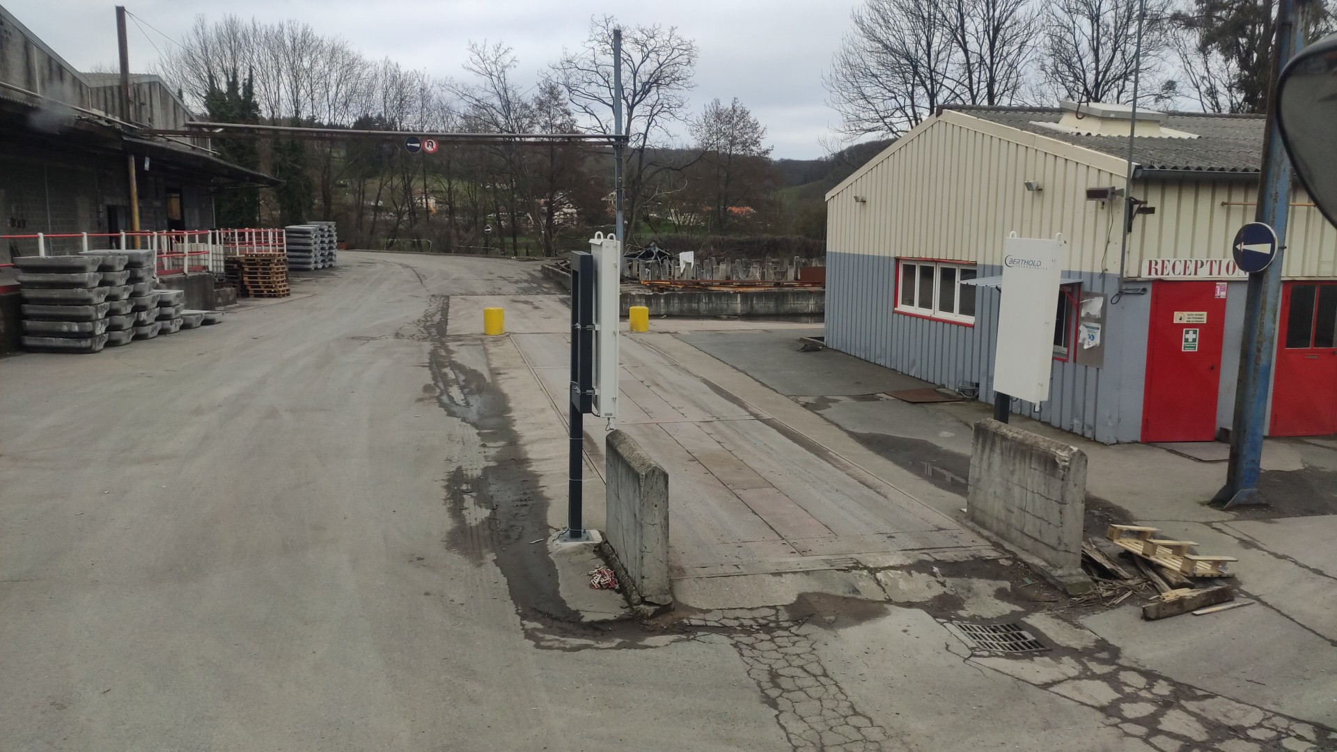 À travers la balance. Nous rédigeons nos travaux de construction et d'installation. Chargement latéral de lingots d'aluminium. Déjeuner de 11h30 à 13h30 La route est en train d'être réparée maintenant. D148. L’entrée de l’entreprise des deux côtés est fermée !